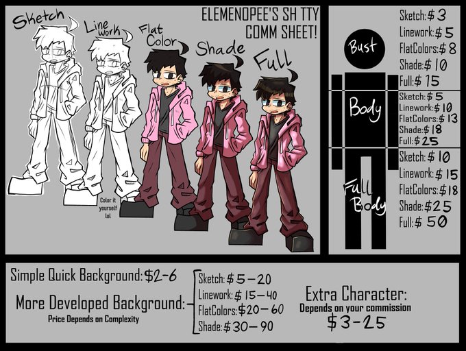 I want cash cuz I want to get cool things. So here is the commission sheet!