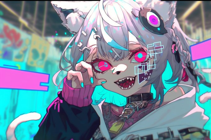猫娘&犬娘ワールド #AIイラスト #Nijijourney #AI #少女 #サイバーパンク #女の子 #girl #猫耳娘 https://t.co/KRRHUIEpzr