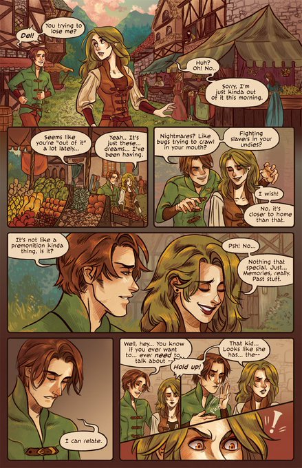 #comicbookhour Hey all! I draw https://t.co/sju7lhTueL a medieval/fantasy romance webcomic! Here's some sappy art!