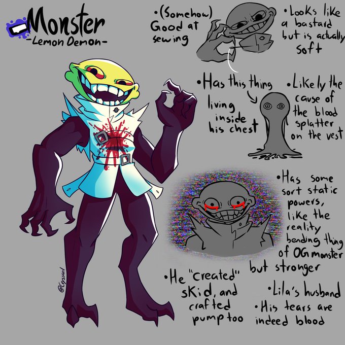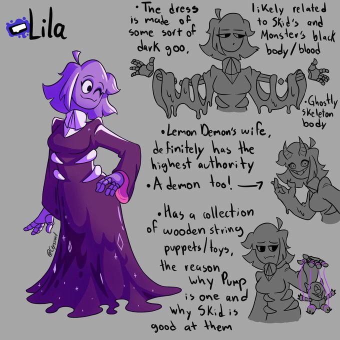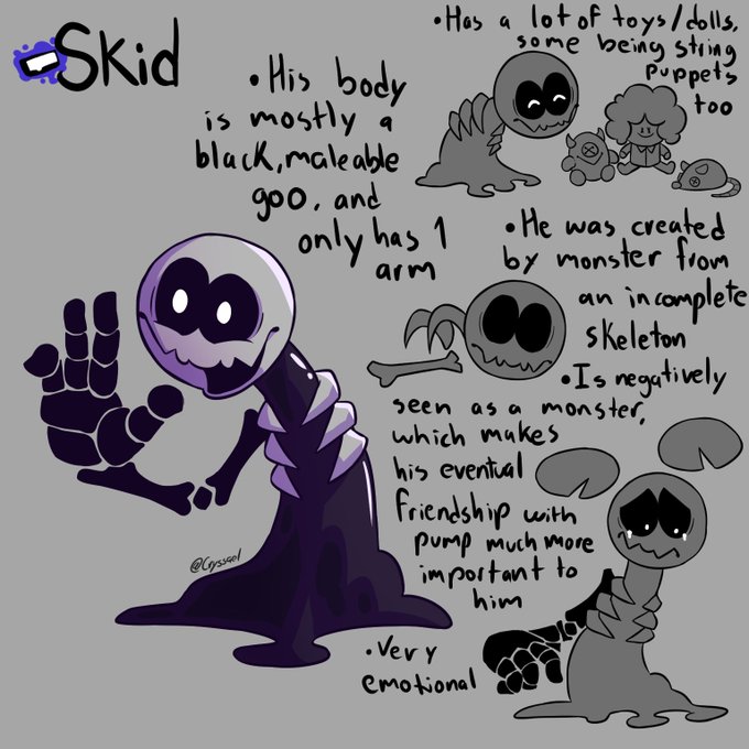 In order to help me with the other project, I´m making these "reference sheets" for Monster & Lila (Skid and Pump a WIP), with "lore" pieces I liked a lot from artists, like @HANMI_M4 and @EelTroll