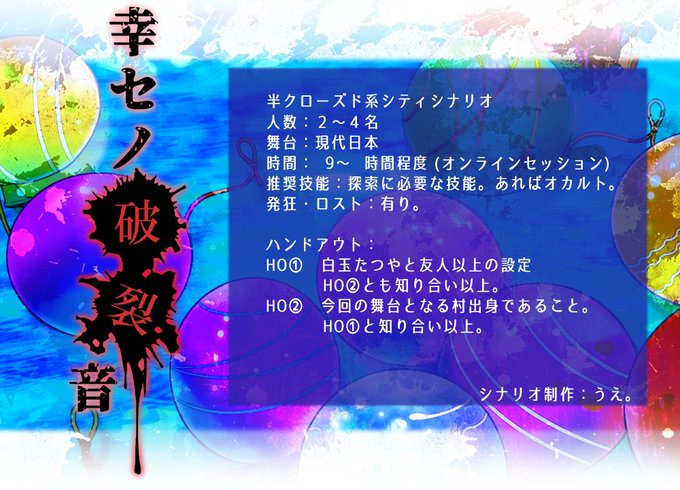 18時〜空いてるんですが、「幸せの破裂音」9時間シナリオなので、あと一晩欲しいところですね…