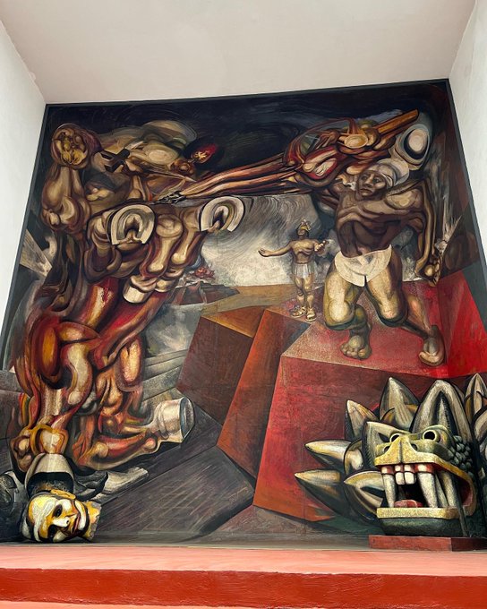 #Sabíasque el mural “Cuauhtemoc contra el mito” originalmente fue pintado por Siqueiros en una casa de la colonia Condesa que era propiedad de su familia? La dirección, av. Sonora #9. Fue pintada en 1944. En la actualidad se encuentra en el Tecpan de Tlatelolco. Mi fotografía #RT
