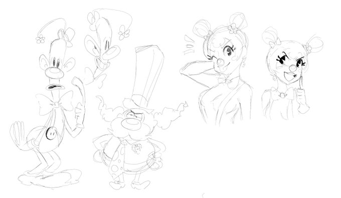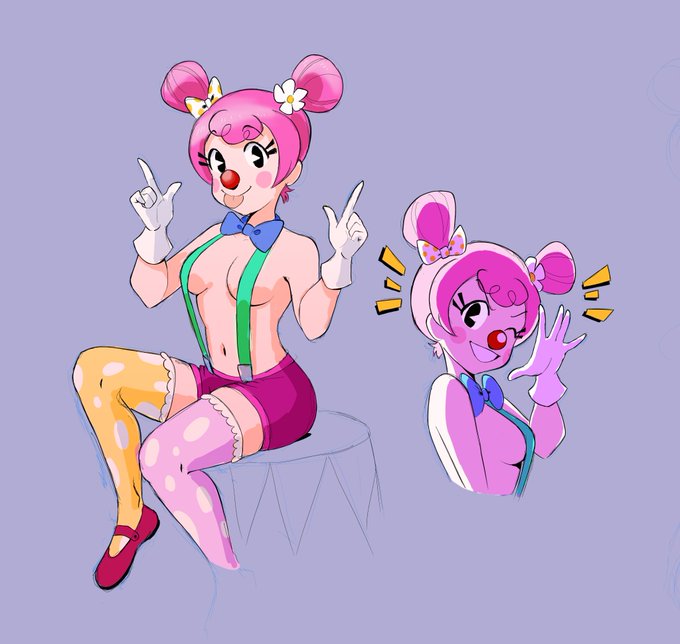 Character that practically came to me while warming up drawing random clowns (pictured right) Her name is Banana Split btw