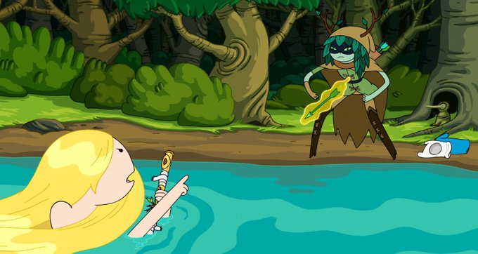 GUYS I JUST MADE AN IMPORTANT DISCOVERY HUNTRESS WIZARD APPEARS AND HAS SPOKEN LINES IN AN ADVENTURE TIME COMIC WE WERE ALL UNAWARE OF THIS AND IT HAS HUGE MEME POTENTIAL