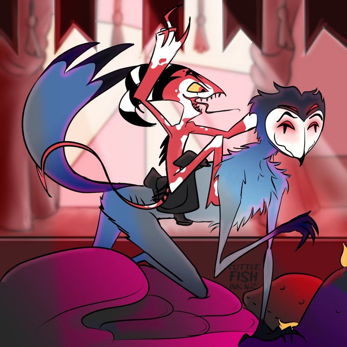 Created a new and irresponsible thirst art Instagram at "cuddlefishinknz". Figured no better way to kick it off than with some frivolous #HelluvaBoss fanart of #blitzoxstolas sharing their love of horses.
