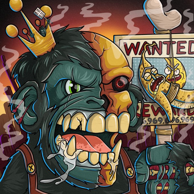 Finally managed to pick up my 3rd OG tonight, some rare traits and a low rank so feels great! He will fit in nicely with all of the Apes, Rotten Bananos & of course my DVDA 🔥 Soo bullish on everything @SrPetersETH and where we are all going! 🚀 @godhatesnftees #godhatesnftees