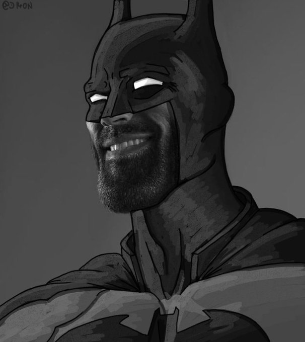 I made a Gigachad Batman and attempted adding colour to a grey scale image