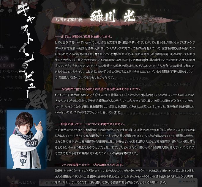 【WEB更新】本日発売のPS Vita『百花百狼 ~戦国忍法帖~』公式サイトにて石川五右衛門役、緑川光さんのキャストインタビューを公開しました!https://t.co/330CHUYmZf #百花百狼