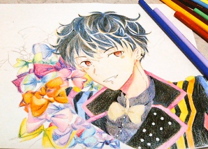 過去に色鉛筆で描いた男キャラのイラストこれくらいしかないんよな、ツイステキャラでも描きたーい