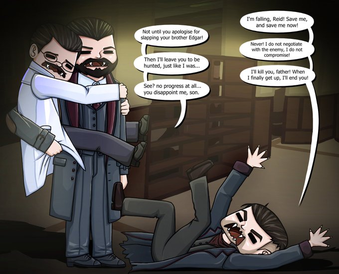 forgive me for the fact that i can't be bothered with the background, but i'm finally done with my 'what if vampires literally acted like bats?' idea, starring #vampyrgame. Would this belong in #mcreid and #swanreid too? #McSwanreid anyone?