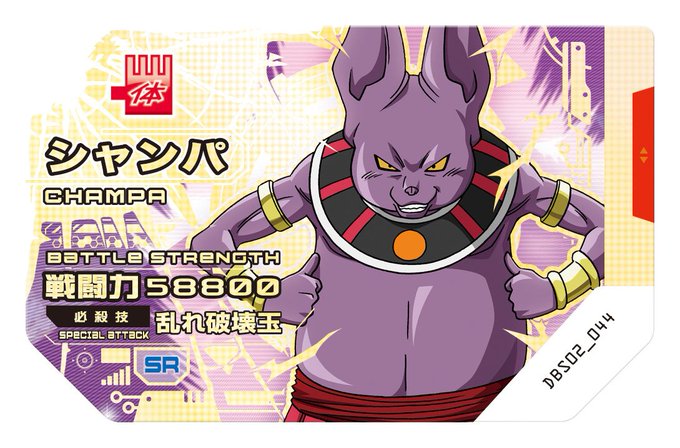 本日第2弾が発売となりました!SRでは「シャンパ」「ヴァドス」を新色で収録してます!是非近くのお店でゲットしよう!! https://t.co/Q9BFD3ITp2 #ドラゴンボール #DBS #スカウターバトル