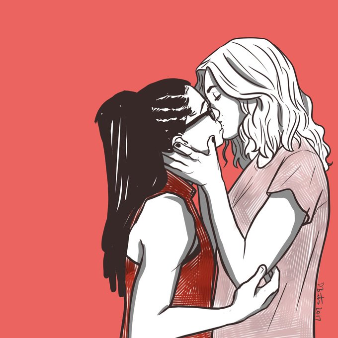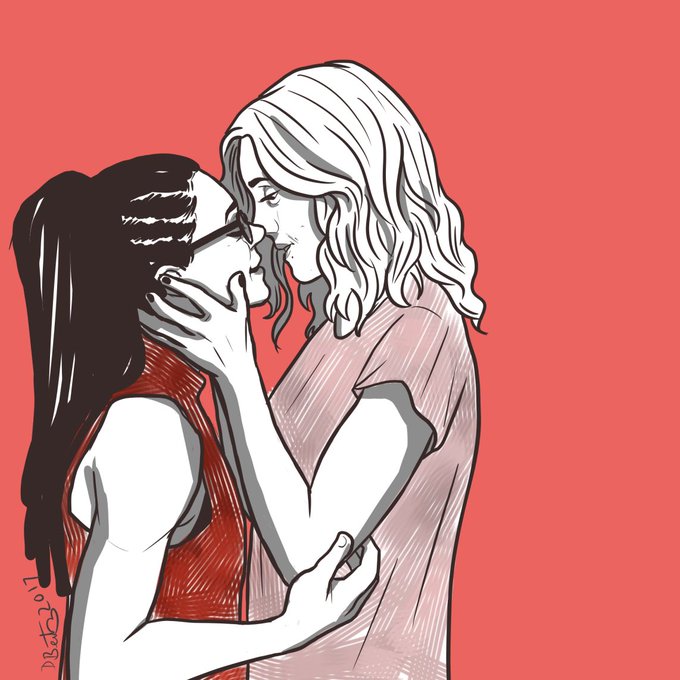 That nose kiss killed me. Anyway its my goal to draw all the #wayhaught cuteness i can handle @KatBarrell @DominiqueP_C #WynonnaEarp