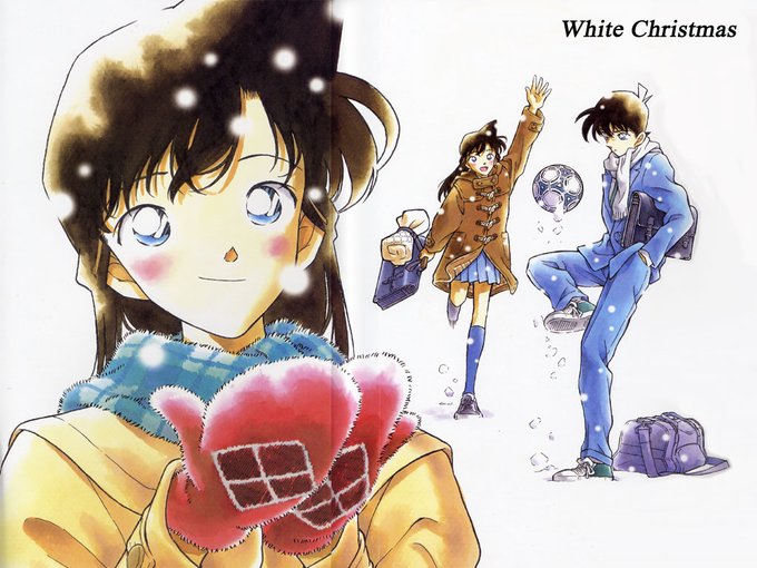 크리스마스 트리 앞에서 웃고있는 모리 란이 걸고 있는 별 목걸이는 쿠도 신이치가 런던고백 때 준 선물. 크리스마스 데이트하는 쿠도 신이치와 모리 란, 란이 낀 손모아 장갑은 쿠도 신이치가 준 선물. 크리스마스는 행복해 #명탐정코난