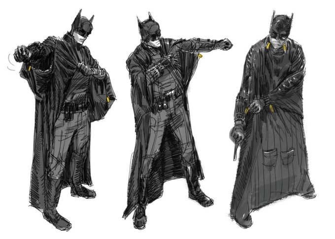 Concept Art การทำงานของชุด #TheBatman ในหนังทั้ง Wingsuit และกำไลข้อมือที่ซ่อนเก็บอุปกรณ์ ซึ่งในการออกแบบดั่งเดิม Batman สามารถร่อนเวหาด้วยผ้าคลุมเหมือนฉบับ Christian Bale และ Ben Affleck แต่โดนปรับให้สมจริงในภายหลัง