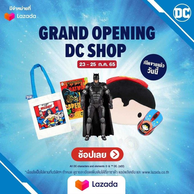 เที่ยงคืนนี้ DC Shop จะเปิดทางการบน Lazada มีโปรลด 50% คูปองลดสูงสุด 500 บาท มีแจกเก้าอี้ SecretLab ด้วย โปรถึง 25 ก.ค. 65 เท่านั้น! https://t.co/CoYuy26RKo