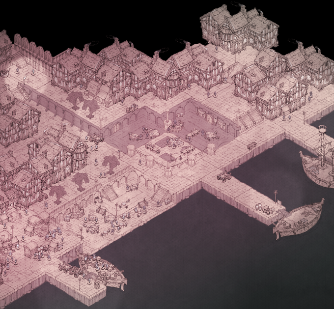 @LaurenWalshArt Learning a fair amount fiddling with light and hues on a limited palette, while simultaneously breaking my will to live on this piece of my d&d party's first meeting with a now-romanced npc