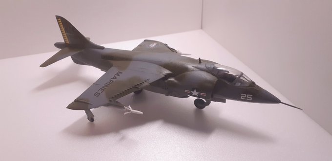 ハセガワ 1/72 アメリカ海兵隊 AV-8A ハリアー完成しました。 惑星での愛機としてお世話になっている機体です。 塗装も寄せたつもりです。 #航空模型