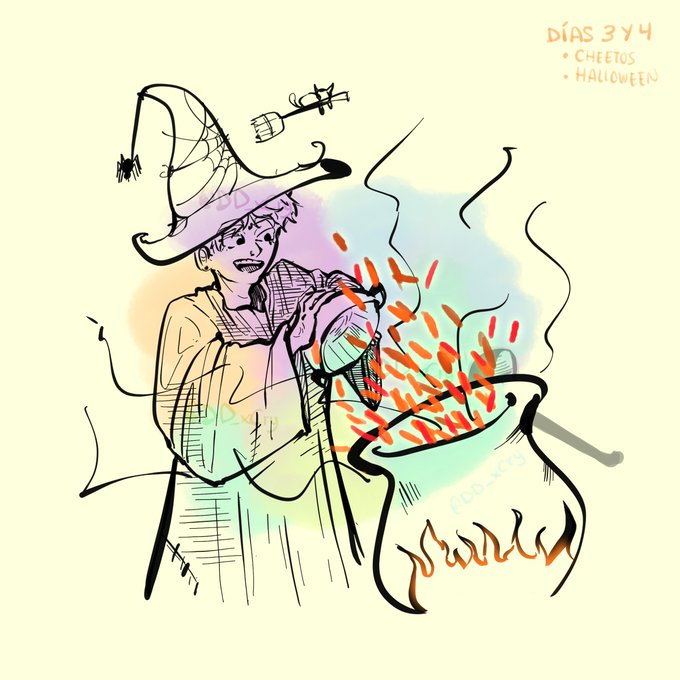 #1WeekDrawingCry ... días 3-4 no sé, Cry brujo multiplicando cheetos(?)