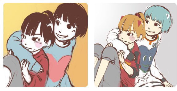 今自分の絵見返してたんだけど、7月に早くメンバー同士くっつけるようになってこれやって欲しいって左の絵妄想で描いて、そしたら数ヶ月後PLAYの裏側のスケッチが右だった。どこまでが現実でどこまでが妄想か分からなくなるん