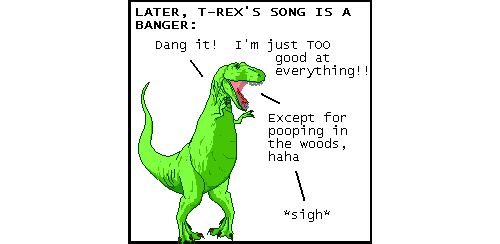 this comic shows that, almost two decades later, t-rex is still musing about the Events Of Comic Number 5