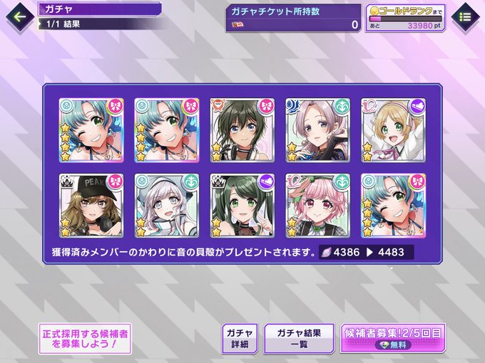 選択肢がひとつしかないオーディションガチャは初めてだなあ… 初手でこんな面白い引きすんなってwww #グルミク #D4DJ