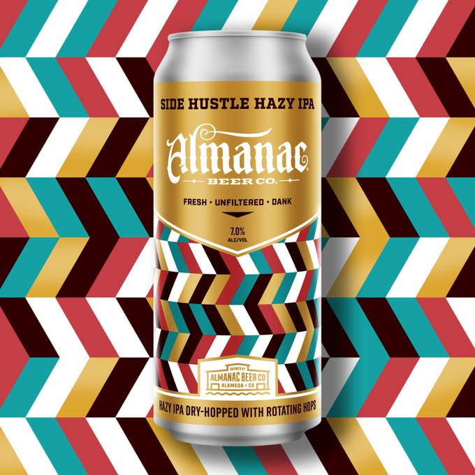 @AlmanacBeer's latest release, Side Hustle Hazy IPA, continues our experimentation with metallized printing stock, giving this label a wraparound 70s era golden shimmer! https://t.co/2gZlVbS6nJ