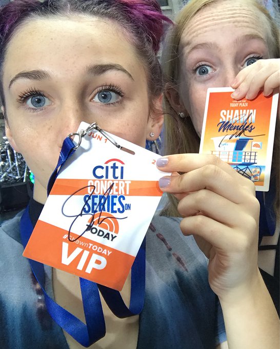@shawnmendes played to a rainy @todayshow crowd in the @todayplaza alongside our posters and badges for the show! #ShawnTODAY