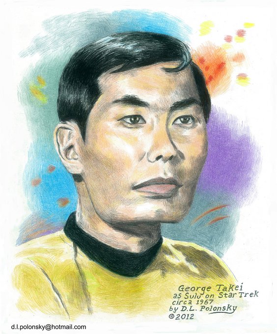 @GeorgeTakei Hello, Mr. Takei, I hope you like this portrait I made of you. If you do, feel free to re-tweet. Thank you! George Takei as Sulu on Star Trek Circa 1967. © 2012, by D.L. Polonsky. Colored pencil on Bristol board.