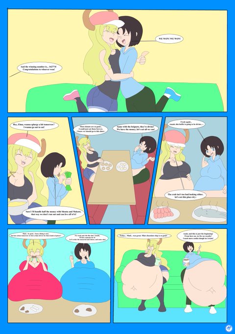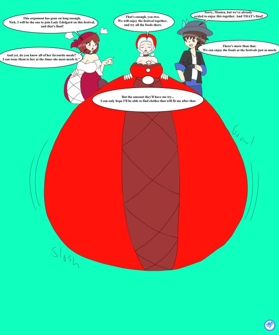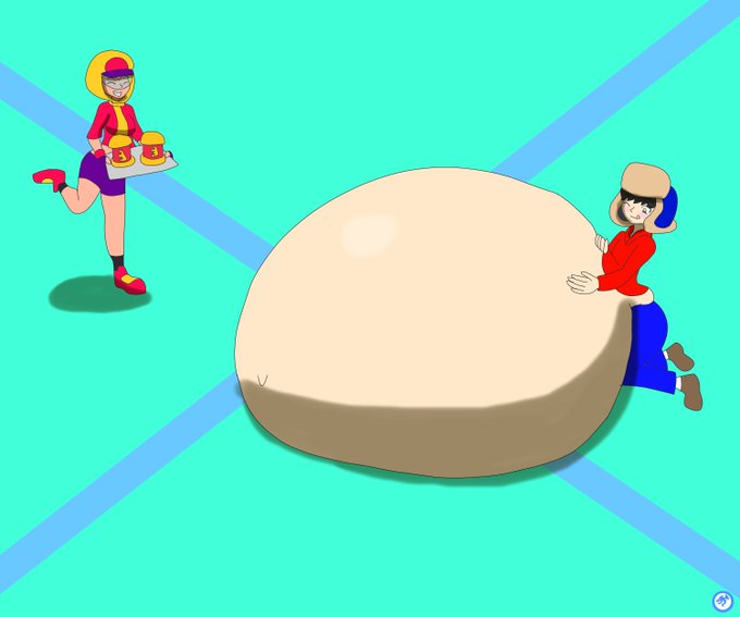commission for DreamB4 of his oc Ryota and Grusha from Pokemon Violet and Scarlet both having big fat bellies and enjoying some ice cream together