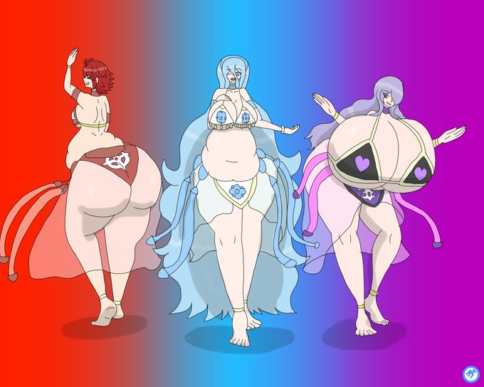 A remake of an old pic of Hinoka, Azura and Camilla from Fire Emblem Fates as Thicc dancers putting up a show