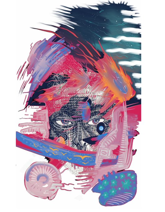 A combination of traditional and digital artwork.