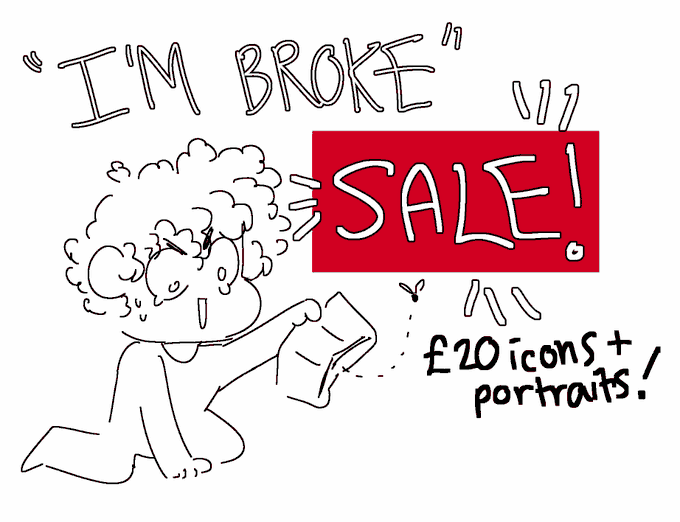 PIC SAYS IT ALL im 💸broke💸 so its ✨SALE TIME!✨ im doing icons AND b/w portraits for £20 each! furries... humans.... ocs... fanart....i can do it all i got u ✨RTs are mega appreciated THANK YOU!