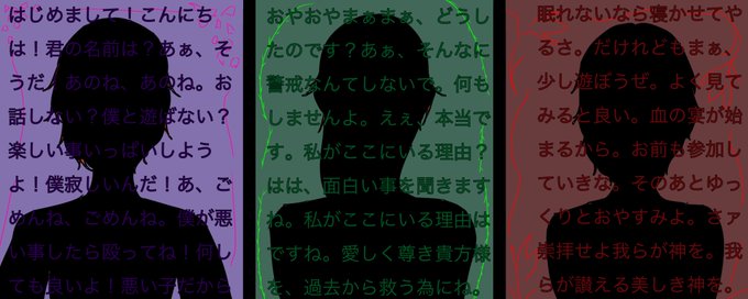 シュバは綺麗なものが好き。何よりも綺麗なものが好き。綺麗なものが好きすぎて、美の神である♯さんにオウサラバッフ生贄に差し出して片目を綺麗にしてもらった人。普段は人に見せないように眼帯してる一枚目の下の目。二枚目の左の人。嘘つき。