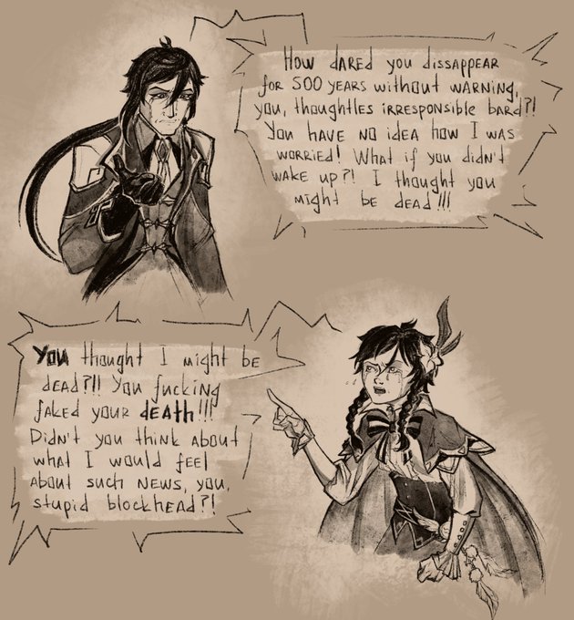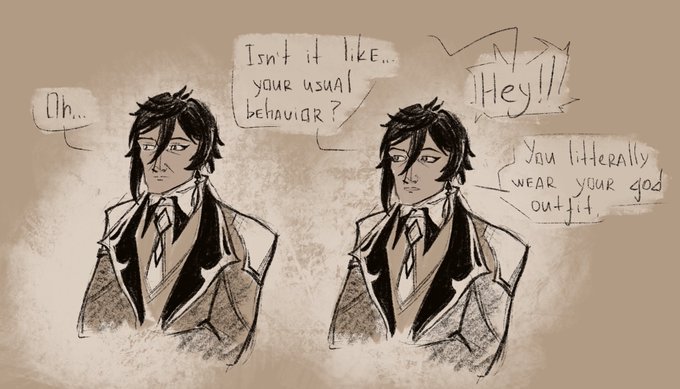 My friend finally helped me with translation so I think #ZhongChiWeek2021 is a good reason to post this part of my comic. There’s actually a great plot with dark!Morax, and in this part he was searching for a worthy way to die but-
