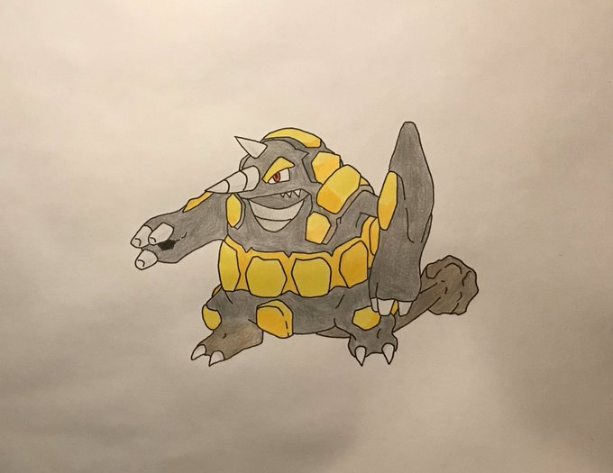 対戦で使ってるトリルエースのドサイドンくんです。色違い孵化させて愛着湧いたので描きました!