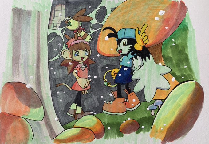 描いたことないのでとりあえず模写φ(・ω・ ) PS2ディスクのイラストにもなってるお気に入りの絵を描かせていただいたー!! 全力でアンコール待機してます…(ノシ 'ω')ノシ バンバン #風のクロノア25thコンテスト