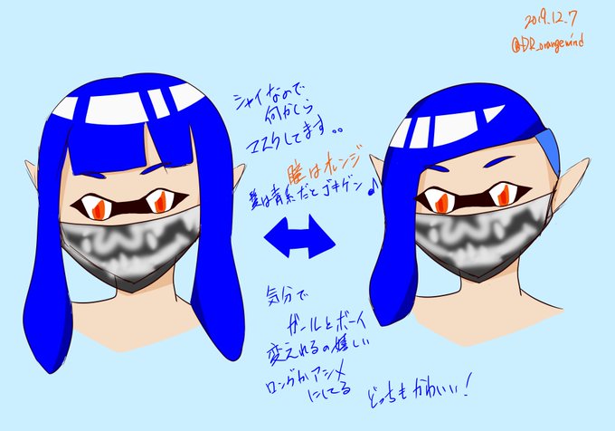 イカスカルマスク無し。折角描いたのに顎のラインとか口が見えないのつらい。