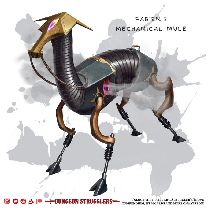 This mechanical apparatus vaguely resembles a mule, and can be ridden by two Medium or smaller...