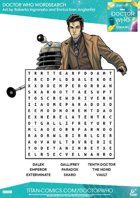 Saturday is @ComicsTitan's #DoctorWho Comics Day! Here's a word search for you to enjoy: