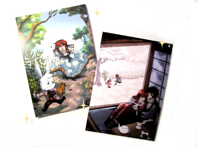 Je fait du fanart et j'aurais aussi des goodies originaux avec mon artbook du inktober de l'année dernière 😀