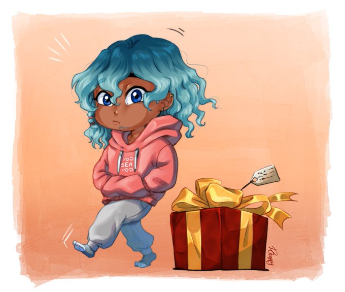 Voici un petit Ke-Akua ouvrant son cadeau ! une peluche du petit chat-requin de @yoginnnnnn