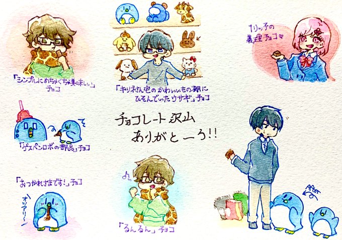 🍫ありがとうの🐧とか🦒とか🦊とかとか 右下のは貰った🍫食べすぎた🐧