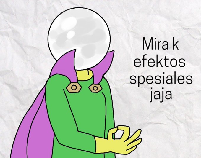 Hace unos años dibuje una chorrada con Mysterio que es super estupido, pero a mi me hizo gracia. Pues le he hecho un remake con el traje del ucm y sigue siendo igual de gracioso