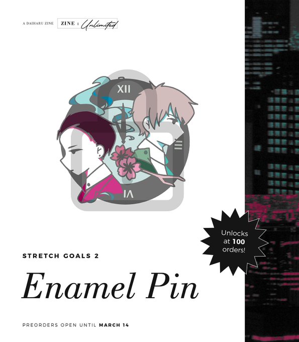 At ONE HUNDRED orders, ALL physical orders will also include a Daisuke and Haru enamel pin.