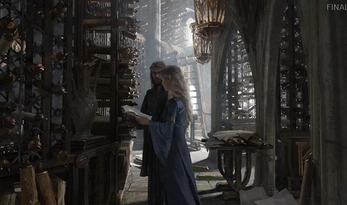The choice to mirror these shots in Míriel and Galadriel's visions was a great way of showing how the Palantíri work.