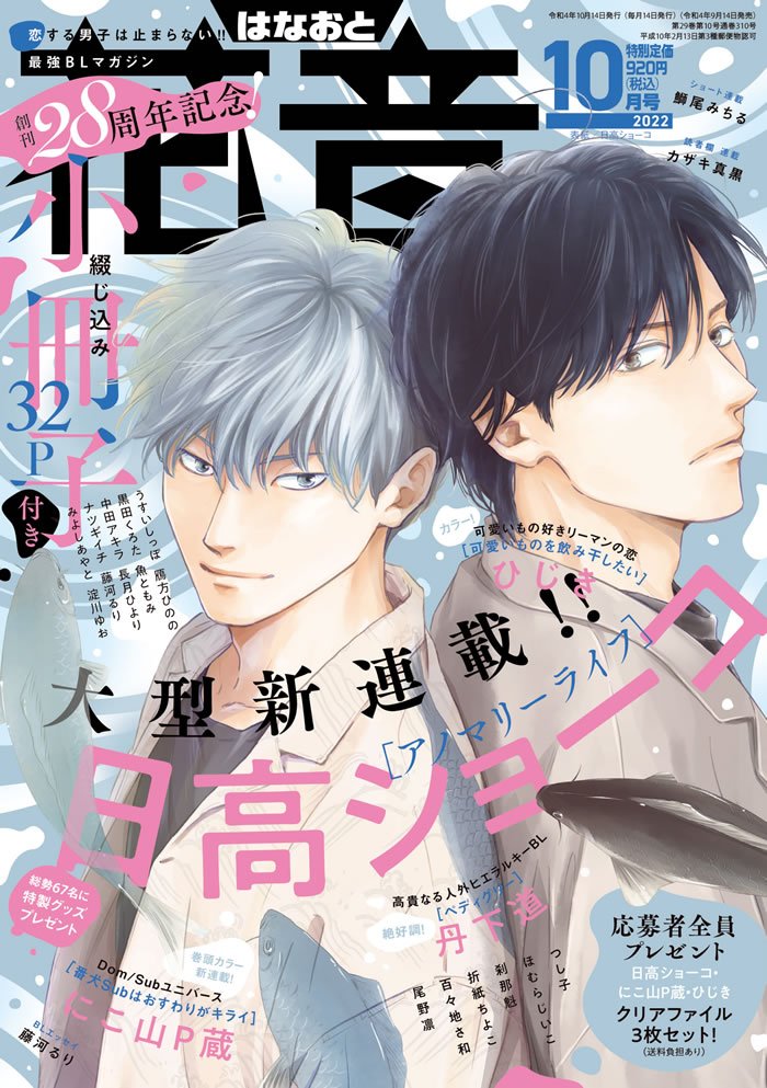 Hidaka Shoko (@hidaka_shoko - Blue Morning, Anti Romance - chez @Editions_Hana ) fait la cover du magazine Hanaoto d'octobre, avec sa nouvelle série : Anomaly life.