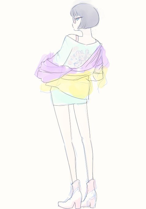 途中だけどモチベ維持のためにあげていくスタイル 塗ってます。線が汚いのは後で直します🙃 顔も🥲 #イラスト好きさんと繋がりたい #illustration #イラスト