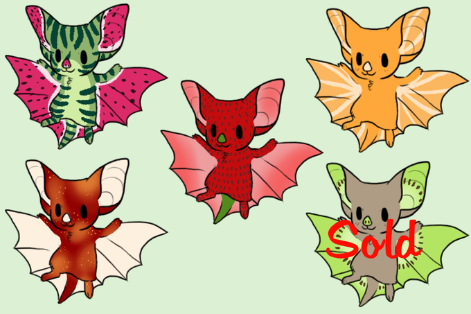 Fruitbat adopts!! $5 each! Base by Sixbane. Kiwi was preclaimed.