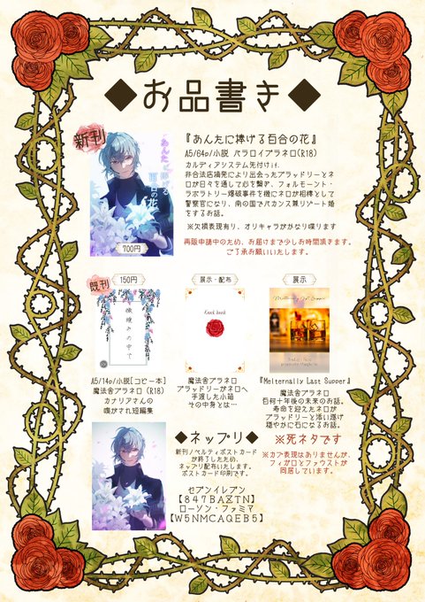 既刊も一種完売したため、お品書きかきかえました!