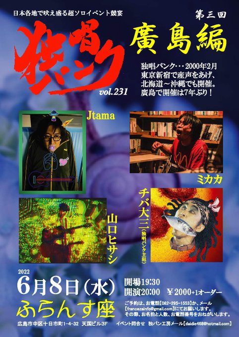 明後日は7年ぶり広島市独唱パンク❗️✊